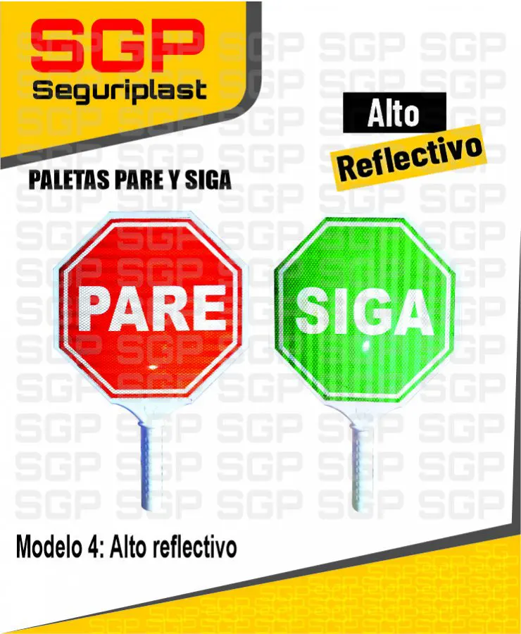 Señal tipo paleta de plastico pare y sigue