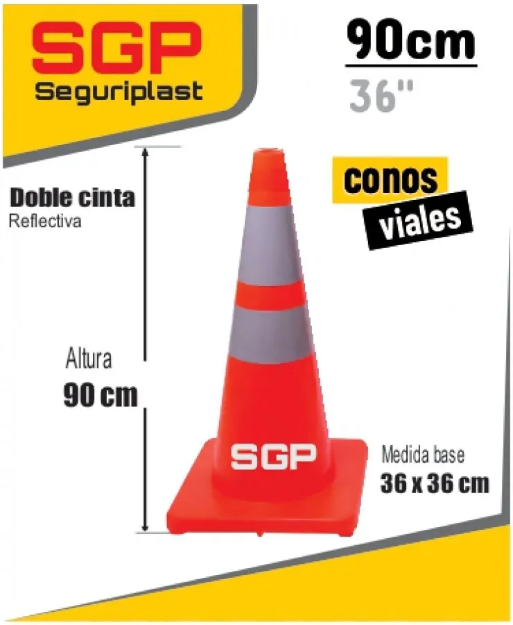 Cono de seguridad para delimitar una zona de riesgo y salvaguardar la integridad física de los que trabajan en el área delimitada o transeúntes que circulen cerca de esta, resistente a los golpes, flexible, de fácil manipulación y de alta visibilidad.