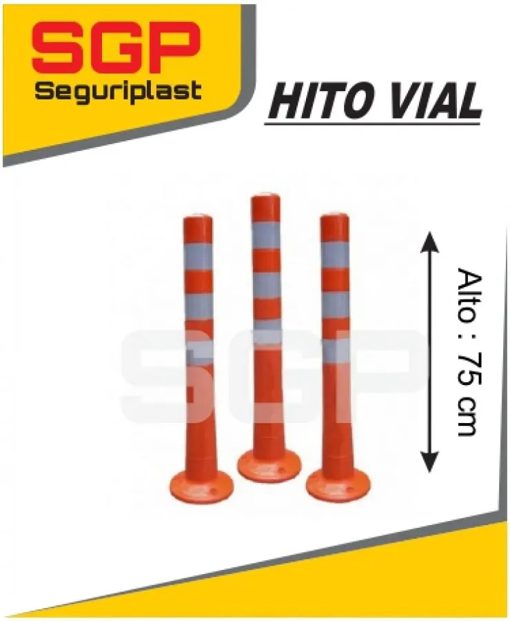 HITO VIAL / delineador vial flexible para señalización que se utiliza para delimitar o guiar el tránsito. Es de forma tubular y retráctil, hecho de polietileno.